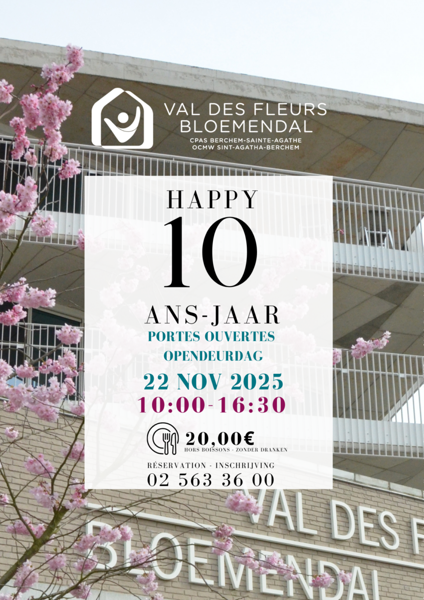 Op 22 november viert woonzorgcentrum Bloemendal zijn 10-jarig bestaan. Ter gelegenheid van deze verjaardag nodigen wij u graag uit op een opendeurdag die zal plaatsvinden op zaterdag 22 november 2025, van 10u tot 16u30.